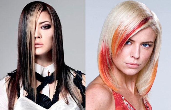 Зональное окрашивание подразумевает покраску отдельного фрагмента прически, например, челки или височной пряди.
