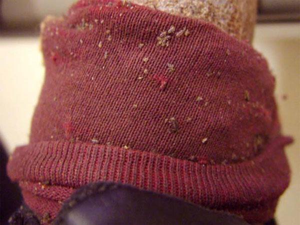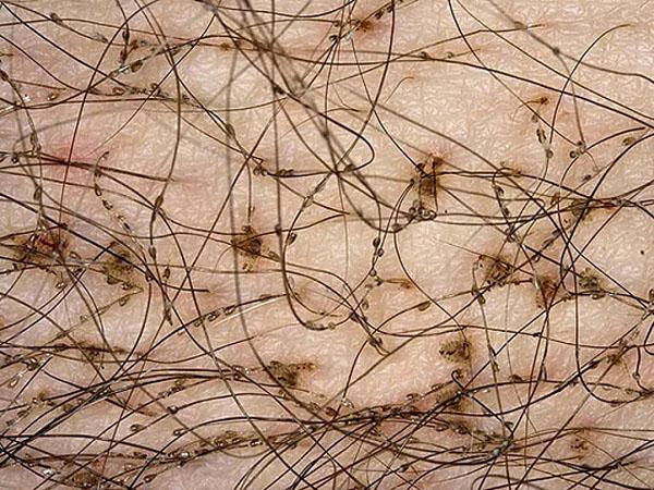 - следы укусов в волосистых частях тела (на голове, в бороде, усах, бровях);