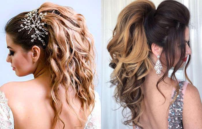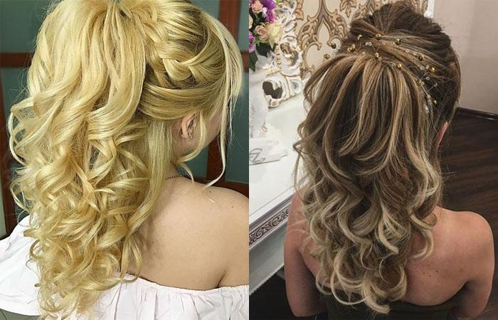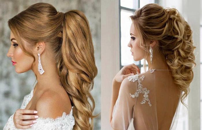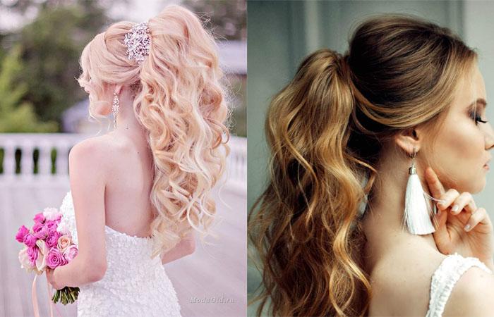 Для свадьбы классикой признают арабский хвостик с локонами. Пышность варианта, дополненная тугими кудряшками, смотрится шикарно. Укладка прекрасно дополнит любой наряд для торжественного случая. Шевелюру принято украшать броской бижутерией, буклями, цветами из волос.