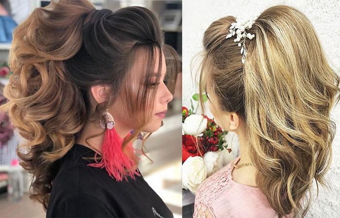 Прическа обязана обладать не только повышенной пышностью, но и высотой. Приподнять хвостик из слишком длинной, густой шевелюры получится с помощью гребня или невидимок. Аксессуары вставляют в нижнюю часть элемента. Пряди приподнимаются вверх, надежно держатся в высоком положении продолжительное время.