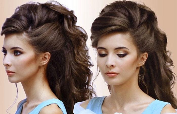 Восточный хвост представляет собой пышную прическу из высоко поднятых волос. За счет присутствующего объема внешне укладка напоминает распущенные локоны. Шевелюру приподнимают у корней с помощью начеса, пышность основному полотну придают завивкой. Результат украшают бижутерией.