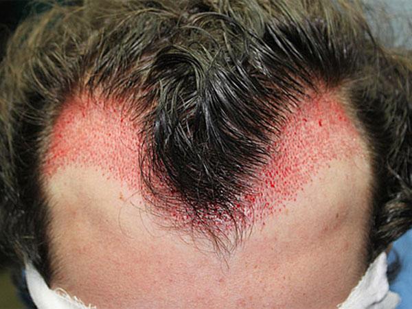 После процедуры в зоне трансплантации, а также в донорской зоне может наблюдаться отёк, болезненность, дискомфорт. Онемение, боль. Зуд, жжение. Образование корочек. Шелушение. Шоковое выпадение пересаженных волос.