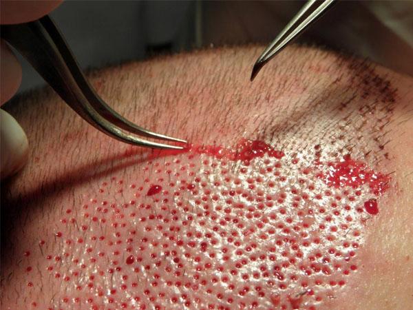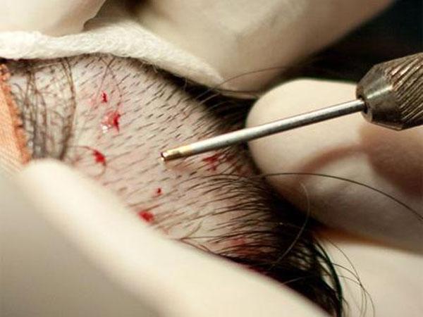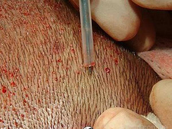Особенность этой методики заключается в следующем: используя специальный инструмент (пробойник), вырезаются одиночные волосяные фолликулы. Затем в зоне облысения прокалывается кожа, и вводятся донорские волосяные луковицы.