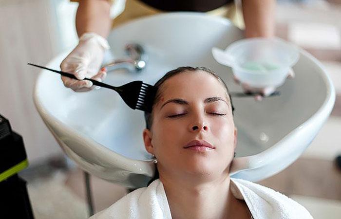 - Мастер моет голову после базового окрашивания (осветления).