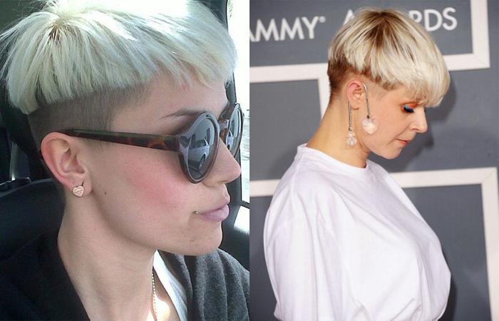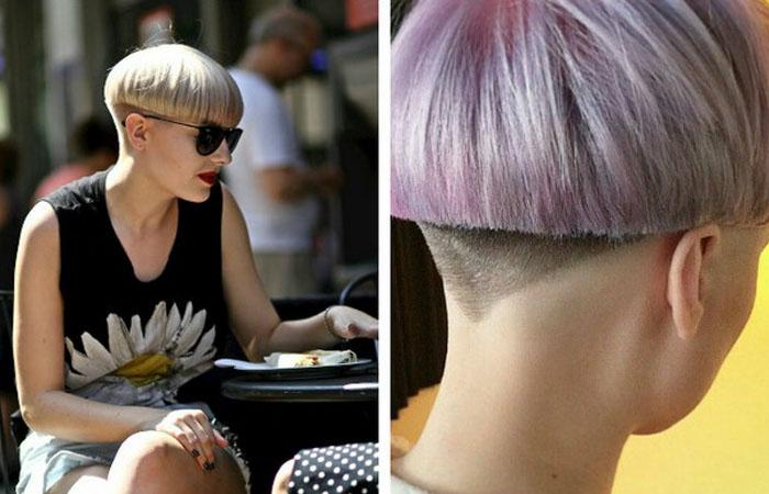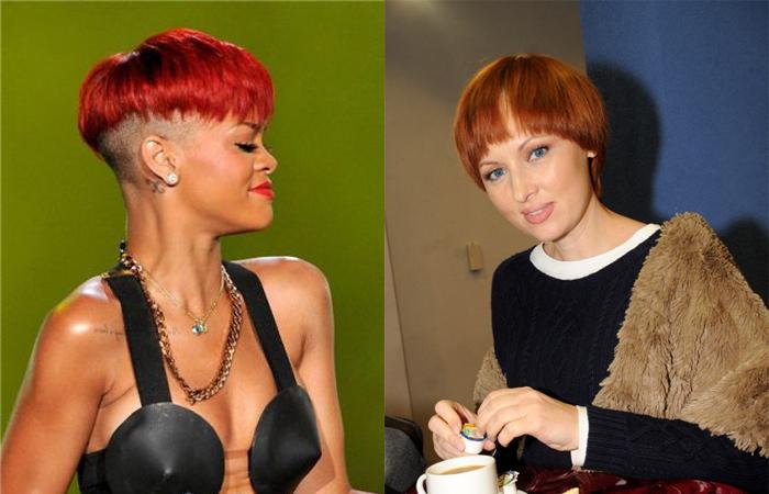 Немногие представители шоу-бизнеса решаются воплотить оригинальную стрижку. Певица Рианна неоднократно радовала экспрессивными образами. Классическая модель «Под горшок» с рыжим цветом, огненно-красные пряди с бритым затылком приковывала внимание к многочисленным тату исполнительницы. Елена Ксенофонтова длительное время носила стрижку «Шапочка», подчеркивая выразительные черты лица. Сегодня актриса предпочитает асимметричные варианты, экспериментируя с различными техниками окрашивания.