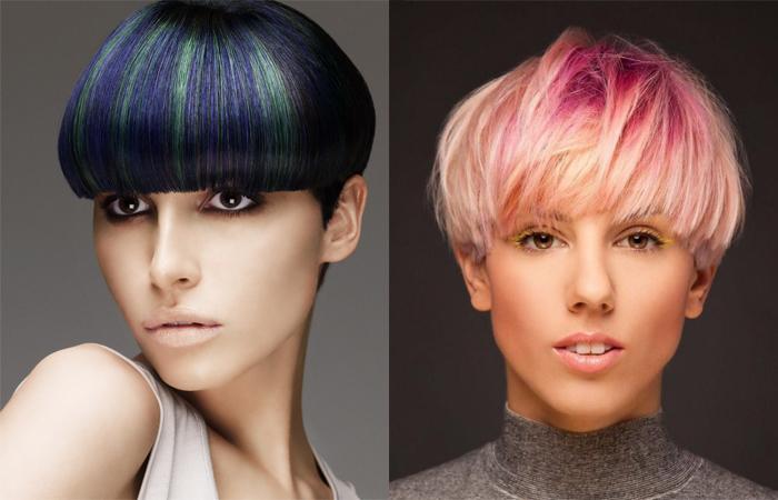 - креативная — длина может быть чуть выше уха, благодаря сочетанию с выбритым затылком и висками создается дерзкий образ, контрастное колорирование, яркие, сочные оттенки подчеркнут оригинальную форму;