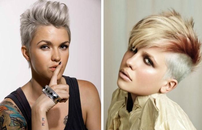Несмотря на короткую длину прически, на шевелюре получится сделать кудри, волны, подобие кока, ирокеза. В этом поможет фен, плойка, бигуди и стайлинговые продукты сильной фиксации.
