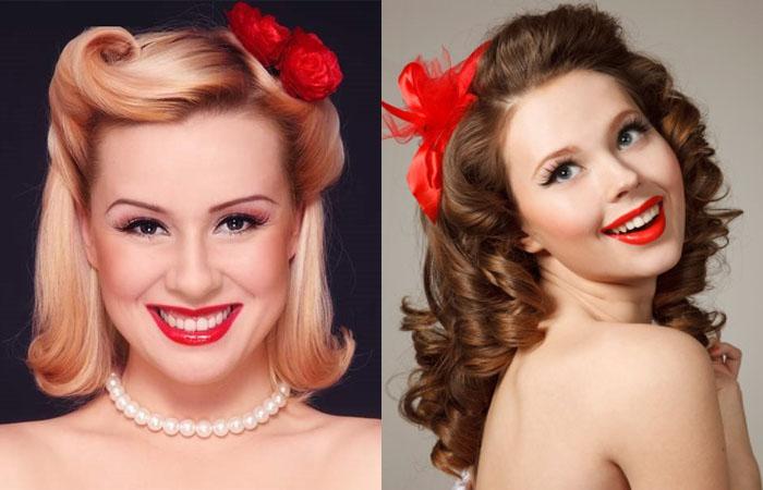 Любительницам длинных распущенных волос не надо огорчаться. Создать прическу в духе 50-х, сохраняя любимую манеру оформления волос, реально. Шевелюру завивают, формируют легкие волны, в редких случаях оставляют ровной. Пряди около лица приподнимают вверх, подворачивают, подкалывают. Получаются озорные бугорки. Прием можно заменить формированием горизонтального локона в виде трубы.