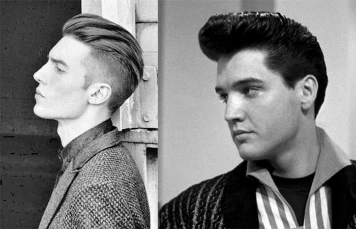 Мужские стрижки в 50-х также изменились. Кавалеры предпочитали брить затылок, оставляя удлинение на макушке. Волосы обязательно укладывали: