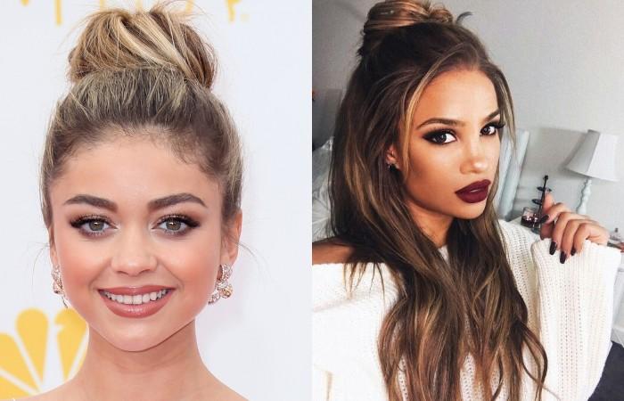 Для курносого, широкого носа стоит выбирать высокие небрежные варианты с пучками. Можно полностью собрать волосы или оставить часть локонов распущенными. Отличный вариант для девушек с правильным, треугольным овалом. Использовать можно в качестве ежедневной укладки, станет украшением торжественного образа.