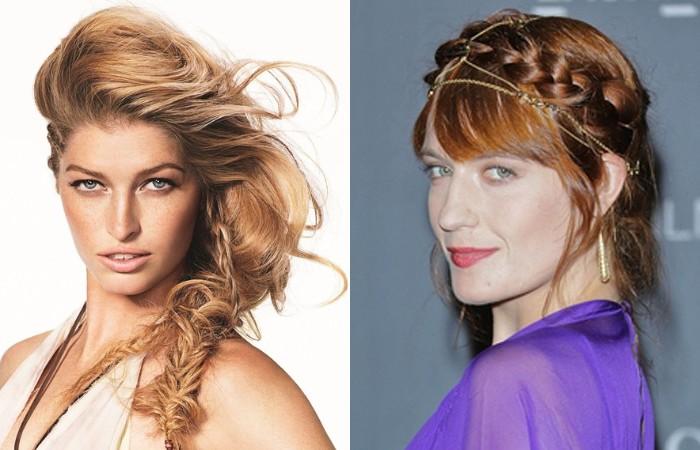 Различные варианты плетений обладают не только корректирующими, но и омолаживающими свойствами. Можно использовать асимметричную, косу вокруг головы, в хвосте, главное, не забывать о прикорневом объеме. Отлично сочетается с челкой, выполнить можно на любой длине, не имеет значения и структура волос. Коса станет оптимальным вариантом не только для длинного, но и для искривленного, носа с горбинкой.